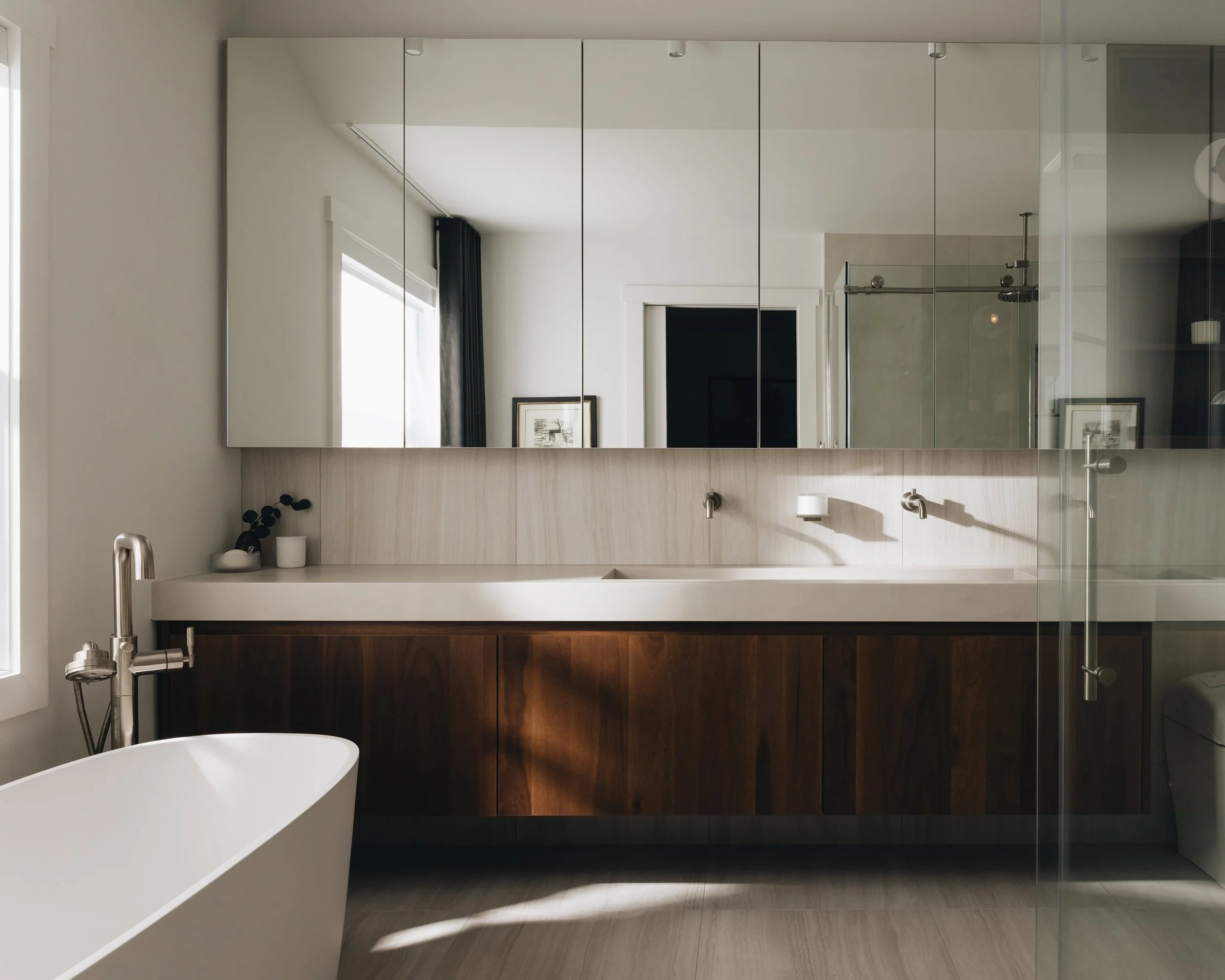 Sur une période de deux ans, Fjord Intérieurs a accompagné la transformation quasi complète de la résidence Krieghoff, nichée dans les hauteurs du mont Shefford. De la cuisine et son arrière-cuisine au vestibule, en passant par la salle d’eau, la salle de bain principale et le walk-in, chaque espace a été repensé dans une approche globale et réfléchie.
